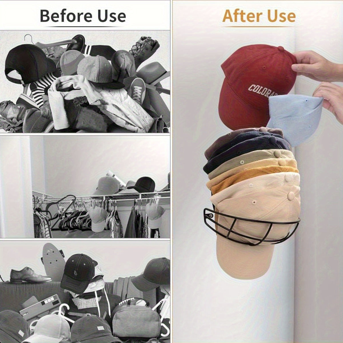 Declutter Your Space: Say goodbye to messy piles of hats and hello to a neat and organized storage solution.