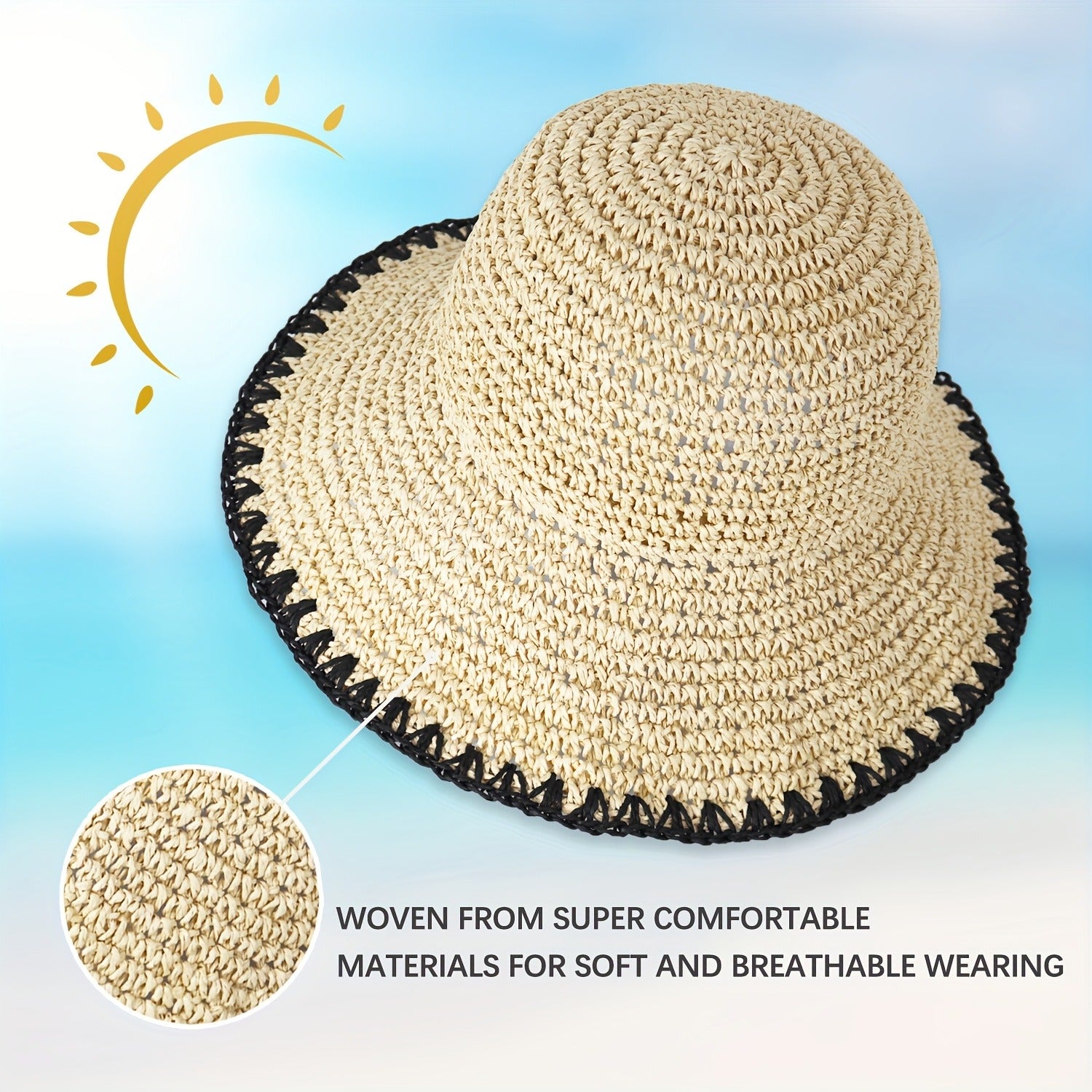 Women's Handmade Crochet Straw Sun Hat - Wide Brim Foldable Beach Hat, Lightweight Breathable Paper Material for Summer Travel, Beach & Outdoor Activities, Hand Wash Only, Beach Accessories, Portable Headwear, Natural Design, Construction